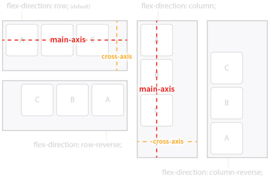 | flex-direction | Flex Items의 주 축(main-axis)을 설정 |